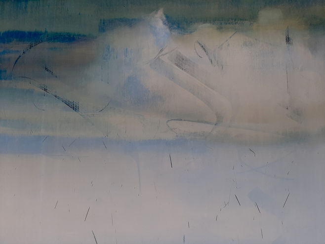 זמן קצר לאחר שהצבתי את העבודה עזבתי לא רק את הסטודיו אלא גם הפסקתי את הלימודים בכרם באופן זמני. עומס ההתחייבויות של הלימודים, במקביל לעבודתי כאומנית ובהוראה לא התאפשרו יחד באותה תקופה. אך המיצב נשאר על הגג ובמהלך הזמן שבתי לבקר ולתעד את השתנותו של מול שינויי מזג האוויר, כיצד הבד מתחיל להיפרד מהמסגרת אליה הוא מתוח ולאט לאט השוליים הלבנים הצדדים נגלים גם בחזית הציור, אבק הבנייה שנערם על פני שטח הציור בעקבות קצב ההתחדשות העירונית סביבו וגם הופעה אלמונית של גרפיטי גרפי יפיפה על פני הענן שלא הצליח לשרוד על משטח השמן העבה של הציור.